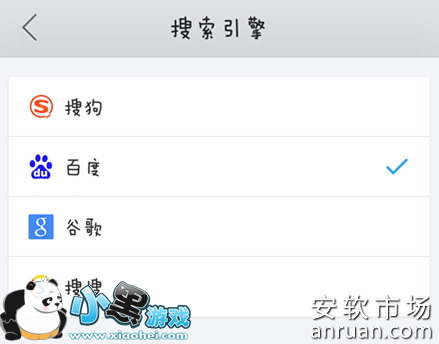 2、选择你要使用的搜索引擎,小编选择的是百度,选择完成,回到首页,在输入框输入你要搜索的内容,此时出现搜索结果。