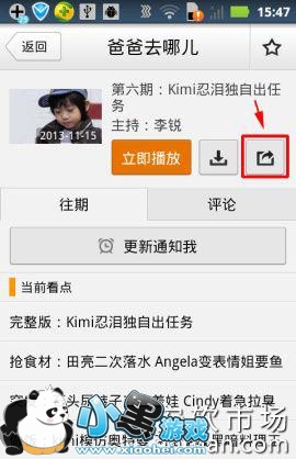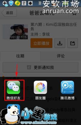 1)打开手机腾讯视频软件,选择自己需要分享给微信好友的视频。如小编选择的“爸爸去哪儿”。在视频“简介”界面点击右边的“图标”。