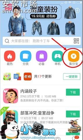 2、在首页找到“集分宝”入口(图中红色框内),点击进入“集分宝”活动页面。