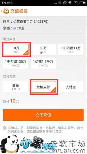 3、充值页面可以看到,可以选择金豆充值、微信 支付、支付宝支付三种支付方式。