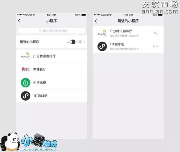 请注意:升级微信到6.5.6或以上版本。在“附近的小程序”里选择你需要的小程序,就可以查看它的门店信息,或者直接使用它的服务。