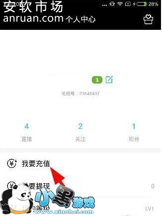 1、用户打开花椒直播客户端,进入个人中心,点击“我要充值”,如下图: