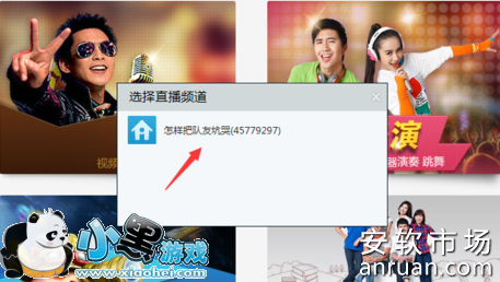 4、点击板块之后会提示你选择直播频道,这个时候你没有注册频道的话就要注册一个频道,会有相应的提示。注册过的,选中一个频道,进入。