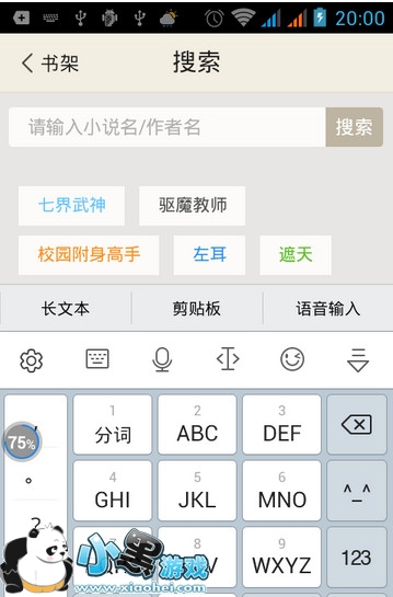 6、点击搜索入口,到界面后搜索想要的书籍和小说