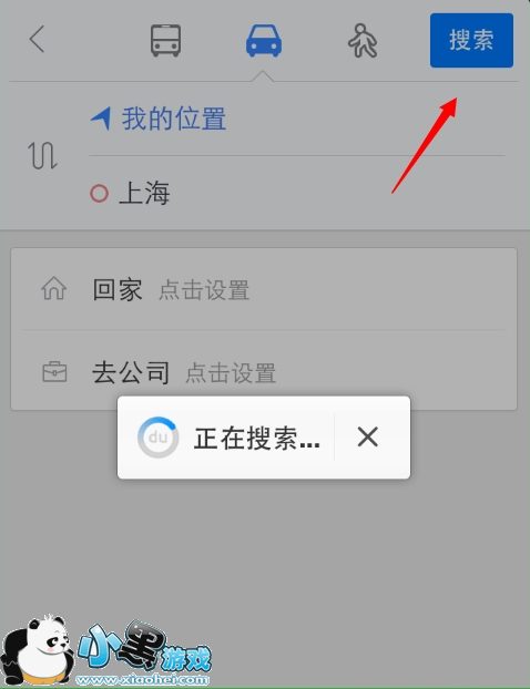 1)首先打开百度地图,点击【路线】,在界面输入终点站,点击【搜索】。(如下图)