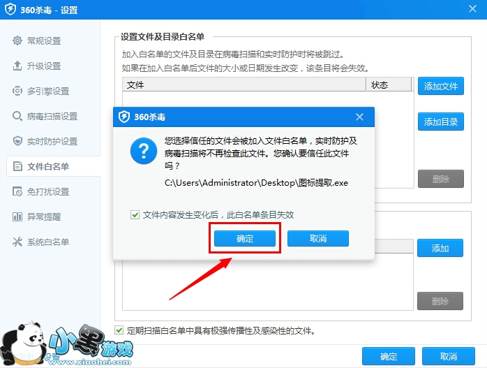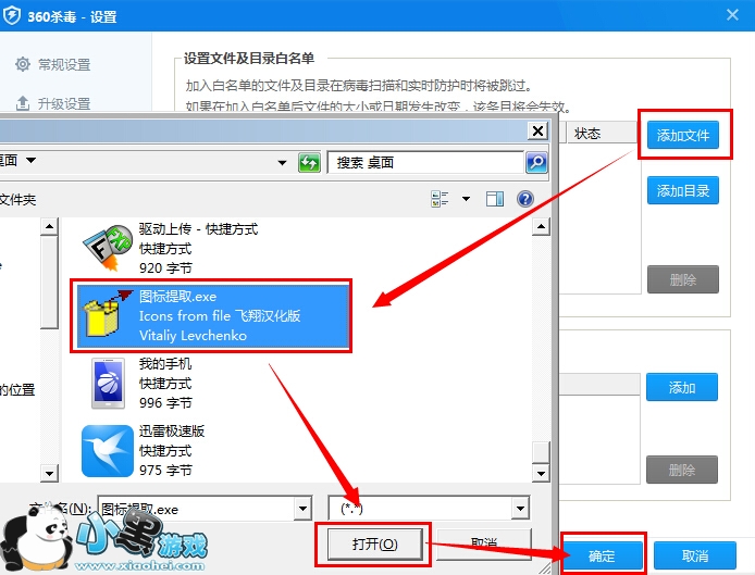 3.在里面有三个白名单设置,以第一个为例。点击添加文件进行设置。把文件添加进来即可。