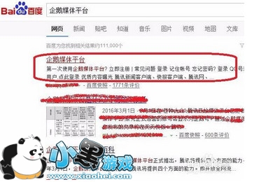 打开百度 ,在百度搜索企鹅媒体平台,或者腾讯媒体开放平台。如图点击打开。