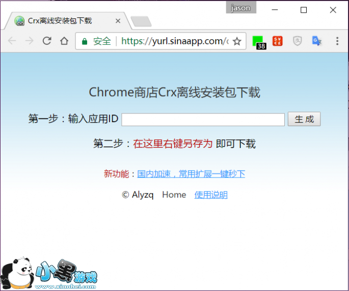 最后附上安装插件的方法,打开https://yurl.sinaapp.com/crx.php网页,输入Chrome插件的应用ID“dhdgffkkebhmkfjojejmpbldmpobfkfo”(仅为举例,不包括引号),然后点击“在这里右键另存为”按钮就可以下载。之后,在Chrome的“扩展程序”页面下,将下载的crx文件拖拽进来安装即可。