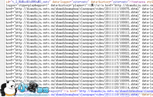 右键单击CNTV连续剧《战地黄花》专辑页面,选择“查看源代码”命令,可见窗口中连续剧的链接地址(图3),将地址复制到TXT文件中稍加处理,便获得了连续剧的播放地址列表。