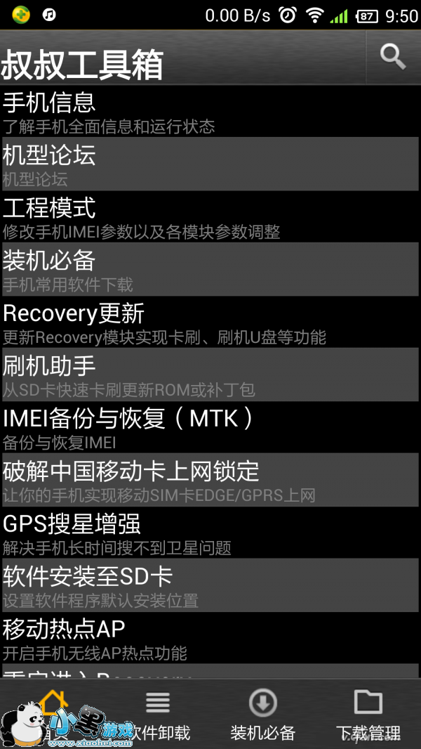 以时下主流的联发科(MTK)方案的手机为例,只需在手机上安装“移动叔叔工具箱”(该软件需要Root),就可一键进入手机的工程模式(图1)。