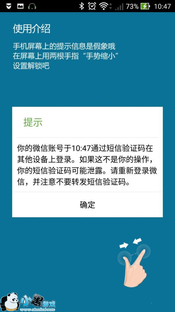 “伪锁是一款针对微信定制的加密软件,它与同类软件最大的不同之处在于,伪锁提供了很多微信无法正常运行的“合理报错”方法(图2)。比如,一点击微信图标就弹出微信奔溃的提示界面(图3)、弹出微信出现异地登陆的假象界面(图4)、提示网络未连接而无法使用微信(图5)……针对这些不同的报错方式,伪锁都会配上相应的解锁帮助。比如异地登陆提示时只需双手捏合屏幕就可解锁、网络未连接时摇一摇手机即可解锁。