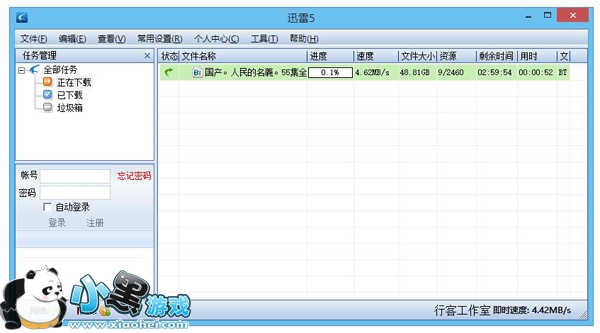 然后行客网上找到了一个真正去广告绿色版的迅雷5。什么广告也没有,界面非常清爽,如下图所示。所以迅雷应版权方要求,文件无法下载这个问题就解决了。而且有时候迅雷急速版下载失败的问题 也可以试试这个版本的迅雷,也可以下载了。