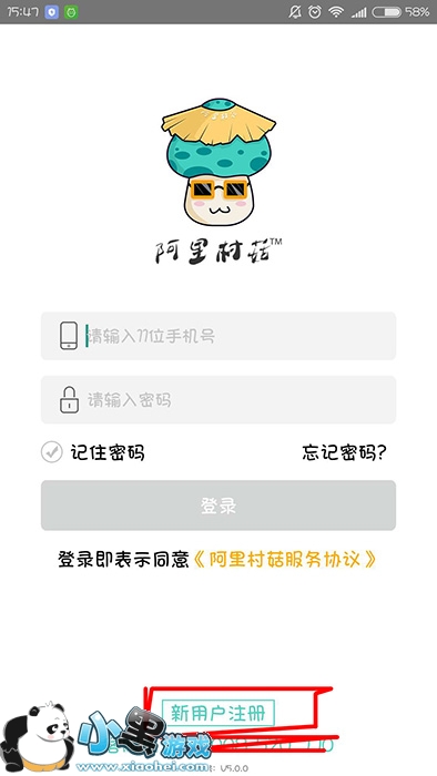 1、首先下载阿里村菇APP,下载好后打开APP,如果是新用户,那就记得要先注册!