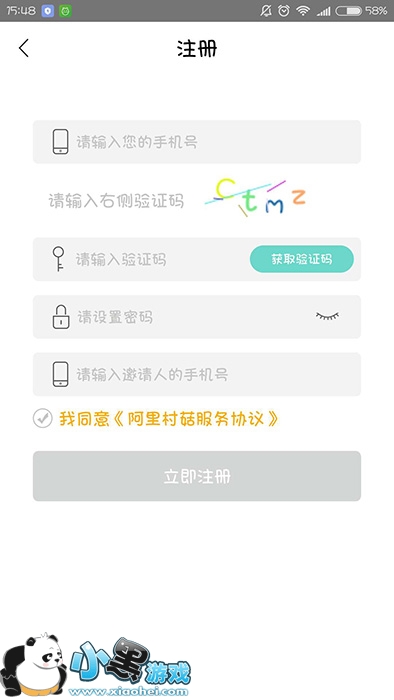 2、注册其实很简单,就是输入自己手机号,设置密码,验证码就可以注册成功率额。