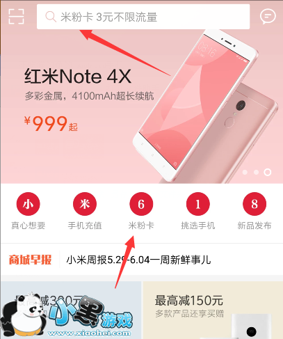 首先下载小米商城,然后搜索米粉卡或者点那个米粉卡的按钮进入。