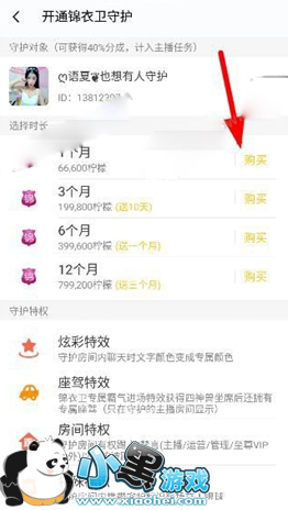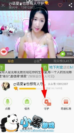 1、用户进入主播间后,点击屏幕调出菜单,在礼物选项里选择“守护”,如下图:
