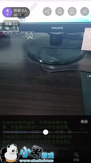 1、用户进入奇秀直播app的直播间后,点击左下角的美颜功能,如下图: