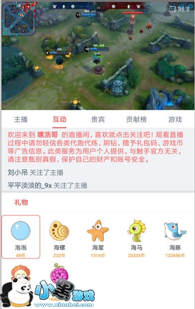 打开触手tv,在礼物页面可以看到一个泡泡需要49触手币;