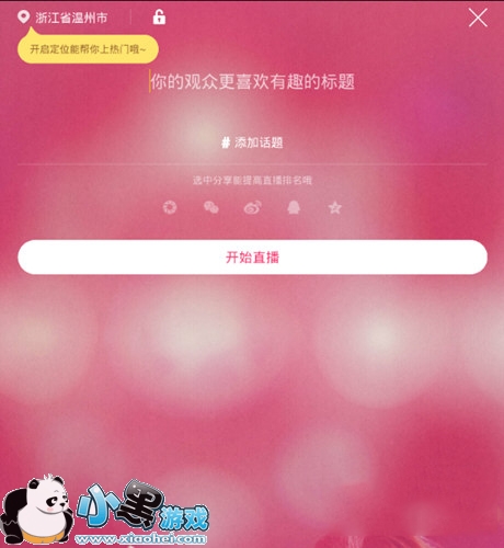 2、然后为你的直播写个标题选择分享的网络,然后点击开始直播;