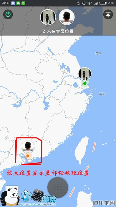 4、当有多人进入时,就会显示两人之间的距离与位置,当距离太远的时候,我们可以放大其他人当前的位置,这样就可以详细的看到其的地理位置在哪了。