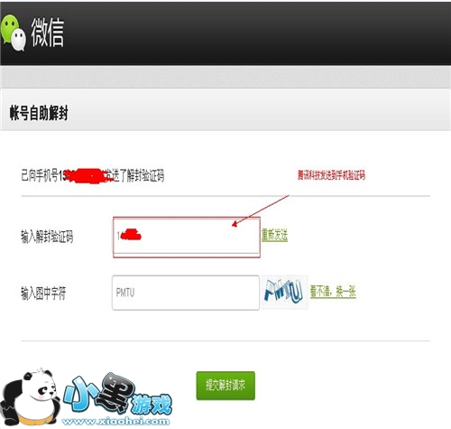 4)输入手机验证码,图形验证码,最后单击“提交解封请求”