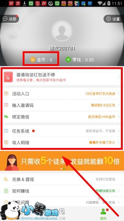 1、在趣头条中,金币是可以直接提现或兑换成话费、流量包等豪礼的,大家在“我的”页面收徒、绑定微信、领取任务等都可以获得海量金币哦;