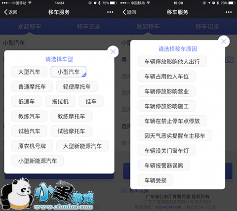 除了可以录入车牌号码、车身颜色、车辆品牌外,根据页面提供的可选车辆类型,涵盖大型汽车、挂车到小型汽车,新能源汽车、甚至是摩托车、拖拉机等几乎所有机动车类型。挪车原因一项也有诸多情况可供选择,有影响他人出行、占用他人车位、影响营业、影响施工,在禁停地点停放;其他的还有天气恶劣、门窗未关、警报误鸣、车辆受损等人性化的提醒传达给车主,考虑的非常全面。