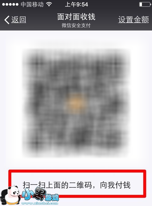 4.进入界面以后,发现面对面收钱的二维码已经创建成功,但是我们要的不是没有下限的打赏,所以找到页面右上角的“设置金额”按钮,并点击进入下一步。