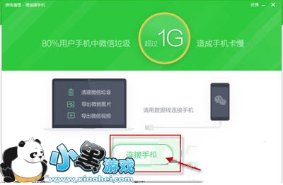 点开之后,需要你使用USB连接手机,点击“连接手机”之后,就能够连上手机开始清理微信啦!