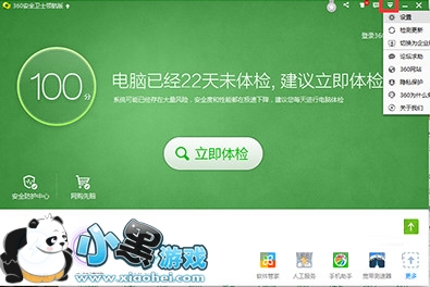 2、选择360安全卫士软件界面右上角的三角按钮,选择:设置(如下图);