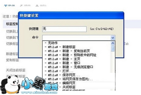 4、在里面设置快捷键。可以设置向前,向后,关闭标签等等好多功能。