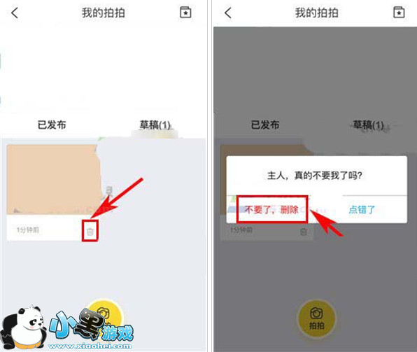 3)然后选择所要删除的作品,点击其下方的【删除】图标,最后再点击提示中的【删除】就完成了。(如下图)