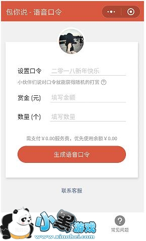 2、然后在该小程序界面需要属于口令,收到这个语音红包的人需要使用语音说出这个口令即可领取红包哦,输入赏金和数量,点击【生成语音口令】