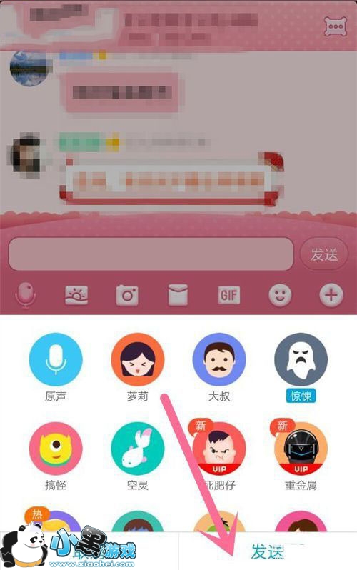 6、选择之后,再点击下方的【发送】按钮就行了,这样就可以在群里面看见自己发的变声语音消息了。
