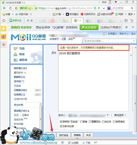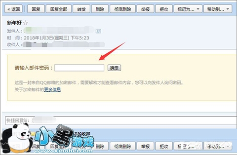 5、好了,通过上述方法我们就成功发送了加密的QQ邮件,接下来我们看看收件方打开邮件的效果: