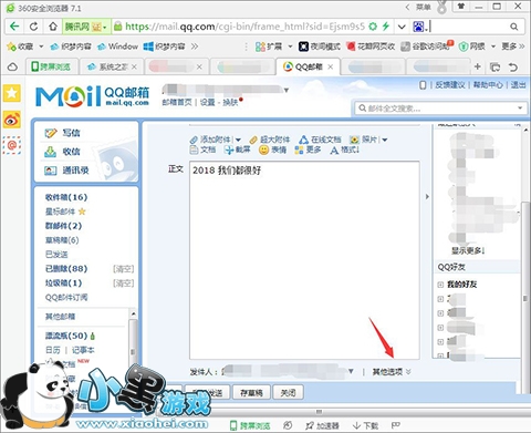 1、进入QQ邮箱写好邮件,点击正文下面的“其他选项”,如下图所示: