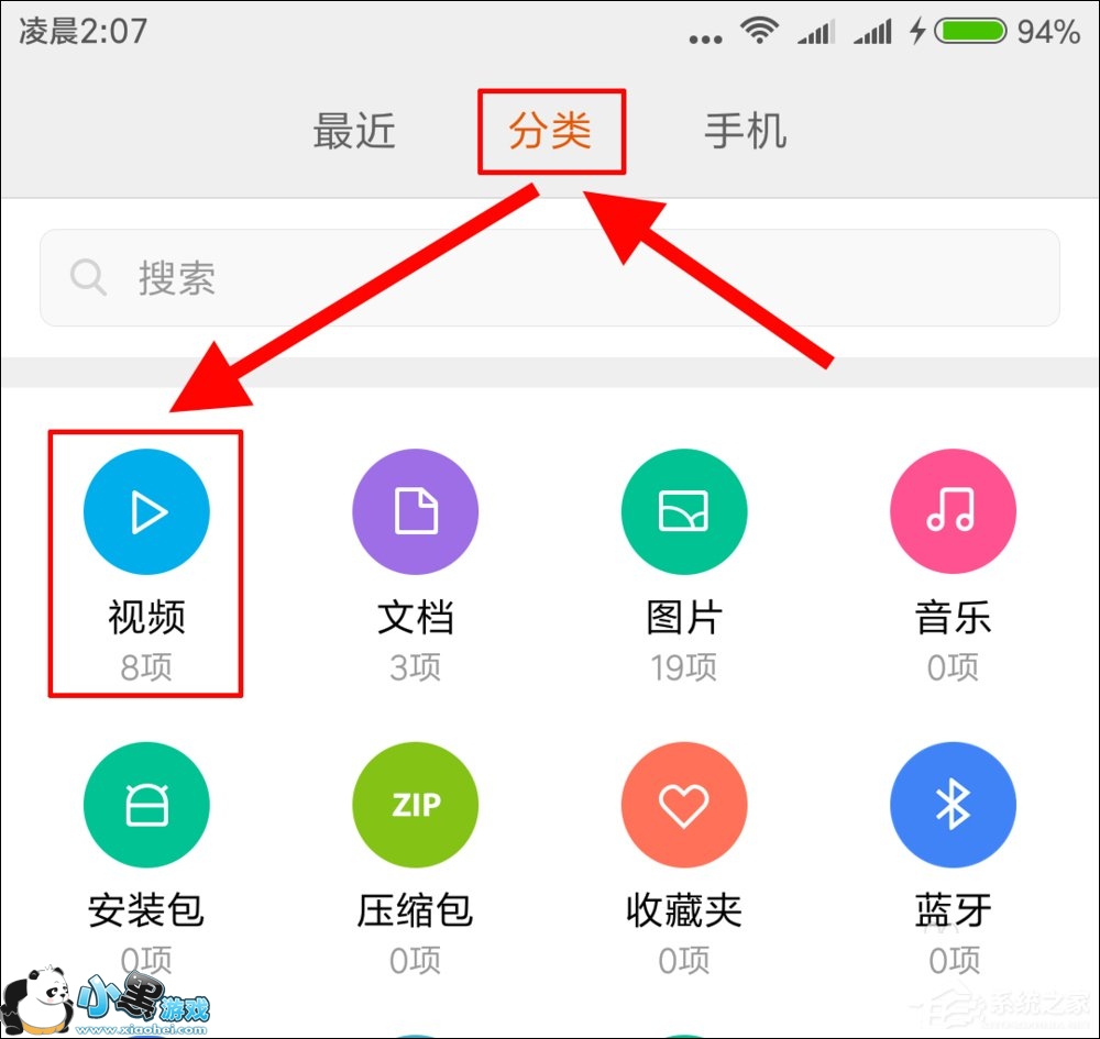 2、录好以后打开【文件管理】,【分类】浏览,找到刚刚录制好的视频。