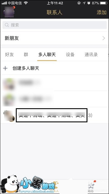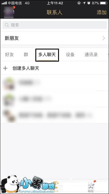 3、进入群组列表页面,点击打开上方的讨论组进行切换。