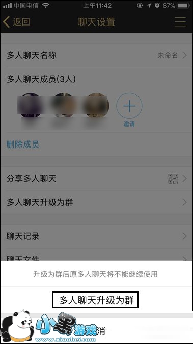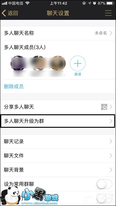 6、进入聊天设置页面,我们可以看到讨论组转群的栏目,点击打开。
