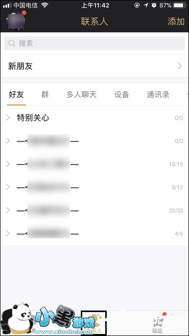 1、在手机上打开已经安装好的QQ,登录到个人页面,选择下方的联系人栏目。