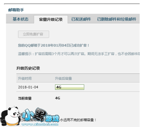 6、扩容成功,界面显示历史扩容记录及当前邮箱总容量。