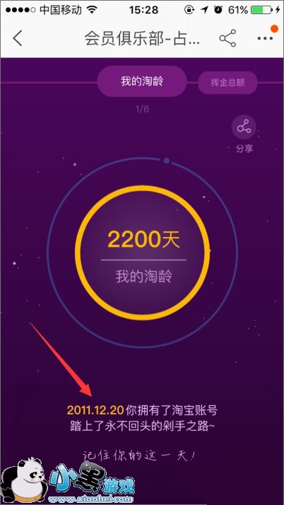 5、这时进入会员俱乐部页面,就可以查看到具体的注册时间还有淘龄了。
