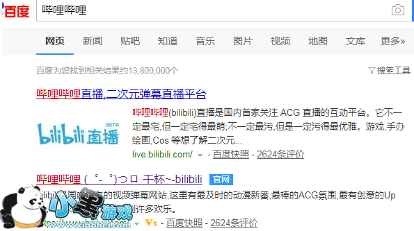 1、首先,我们在百度上搜索哔哩哔哩官网,然后点击进入哔哩哔哩首页,