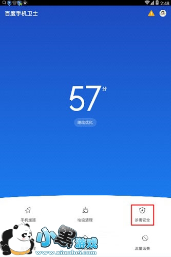 1、在百度手机卫士主界面中,点击界面下方中的“杀毒安全”按钮;