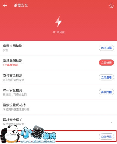 2、在百度手机卫士的“杀毒安全”界面中,检测完毕之后,点击列表中“碎屏保障”一项右侧的“立即开启”按钮;