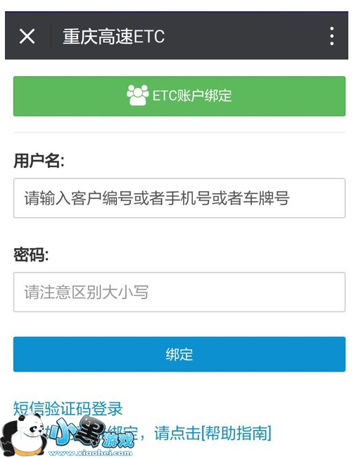 5、在绑定页面中输入用户名和密码相关信息,点击下方的【绑定】,完成ETC账号的绑定。