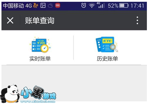 6、然后再回到刚才的我的账户页面,点击你的账户后就能进入到账单查询页面了,进入查询页面后可以看到有实时账单和历史账单两个选项,然后点击历史账单进入。