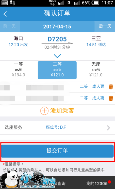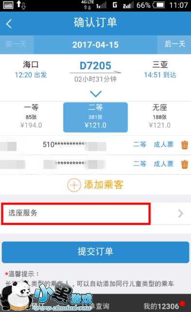 选择乘车人,如果之前未登录帐户,这里还可能需要登录。
