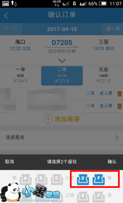 从屏幕下方的座位示意图中选择需要的座位,然后点击确认。