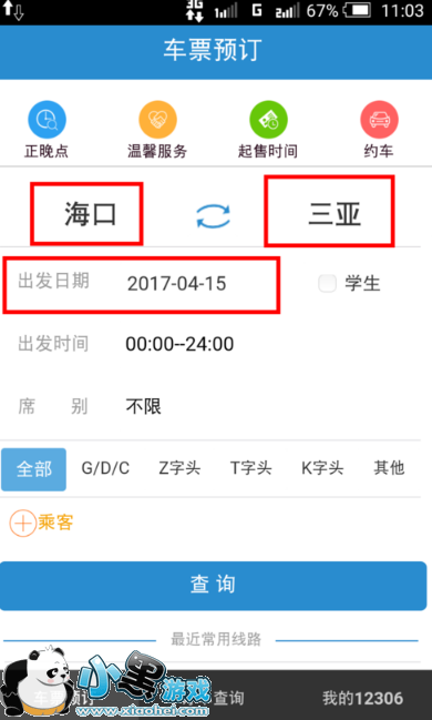 打开12306手机客户端,选择出发地、目的地和乘车日期等信息,然后点击“查询”。